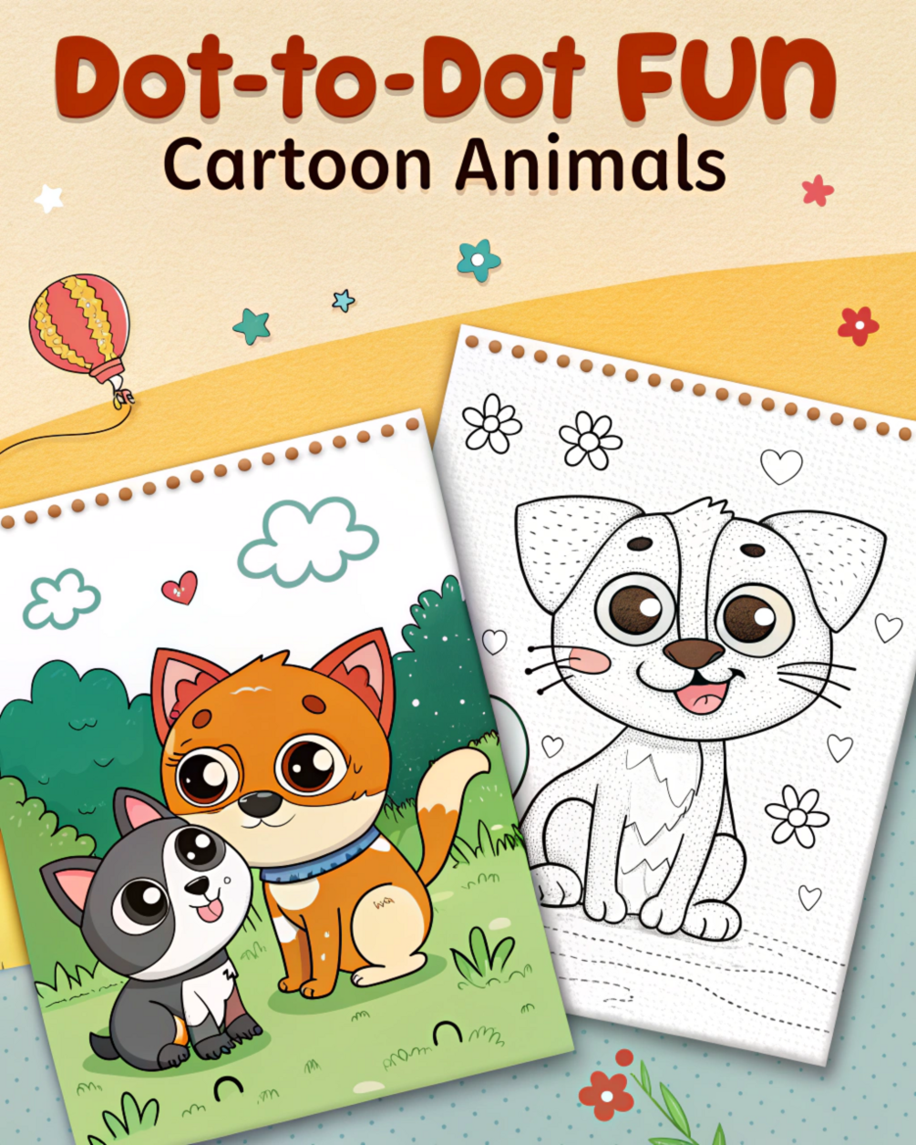 Discover endless fun and creativity with Dot-to-Dot Fun: Cartoon Animals! This activity book is perfect for kids who love puzzles and cartoons. Filled with adorable cat, dog, and animal designs, each page lets children connect the dots to reveal playful and whimsical characters. Ideal for sparking creativity and learning in a fun way, this book is a must-have for little animal lovers!